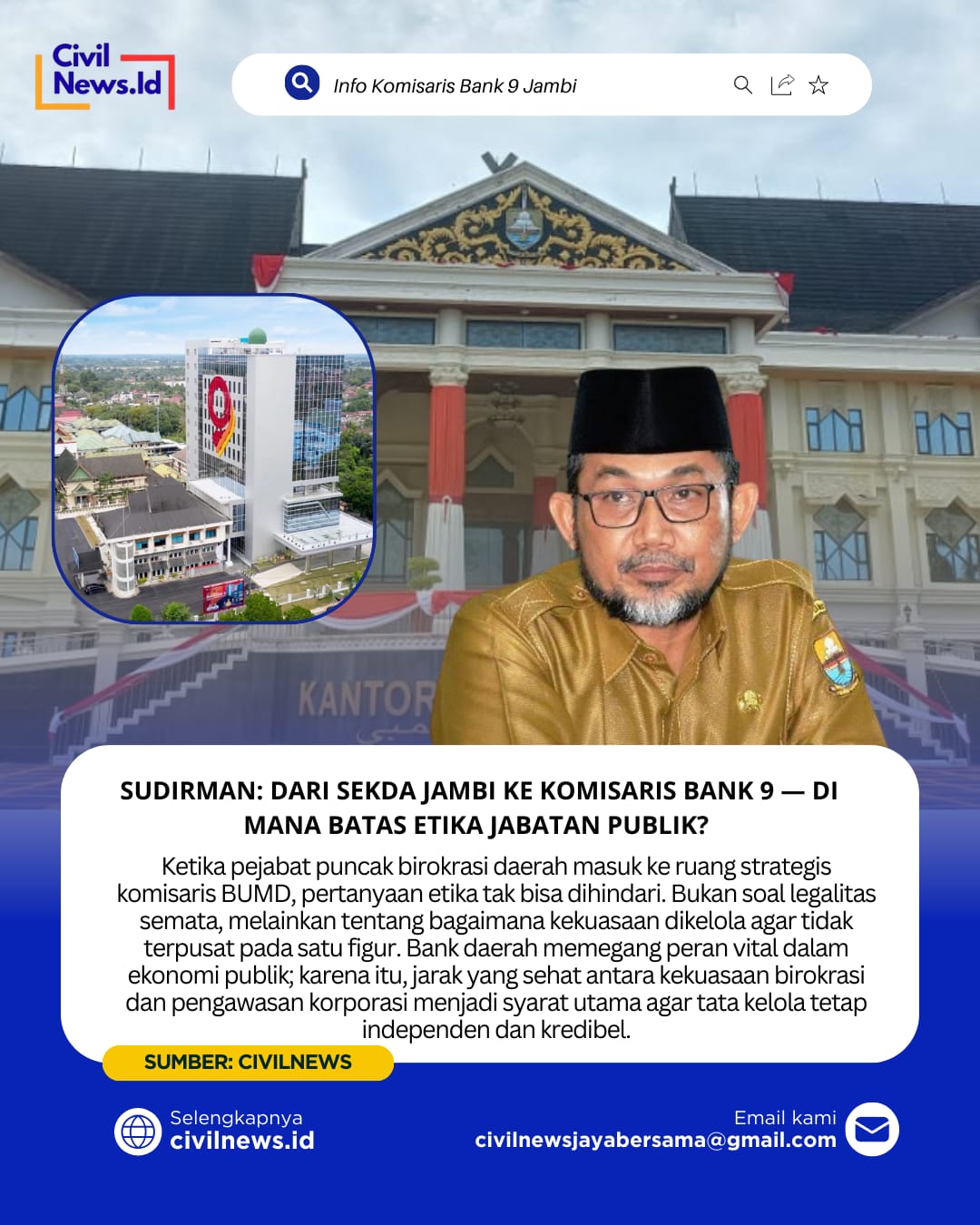 Sudirman: Dari Sekda Jambi ke Komisaris Bank 9 — Di Mana Batas Etika Jabatan Publik?